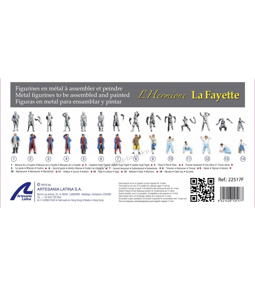 Strona główna » Modele drewniane szkutnicze » akcesoria do żaglowców » Artesania Latina 22517F - Figurki Hermione La Fayette