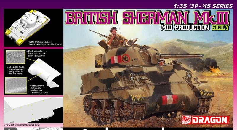 Dragon 6231 - British Sherman Mk.III Mid Production Sicily + bonusDragon 6231 - British Sherman Mk.III Mid Production Sicily + bonus