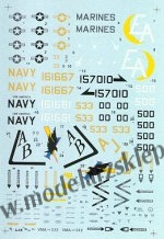 This sheet offers the modeller 3 decal options including A-6E from VA-36 "Roadrunner" of the US Navy aboard the USS Theodore Roosevelt in the Red Sea during Operation Desert Storm in January 1991 in a Desert paint scheme. Plus VA-85 "Black Falcons" embarked upon the USS America in 1993 and VMA (AW)-332 "Polka Dots" of the US Marine Corps out of MCAS Cherry Point, North Carolina in April 1993