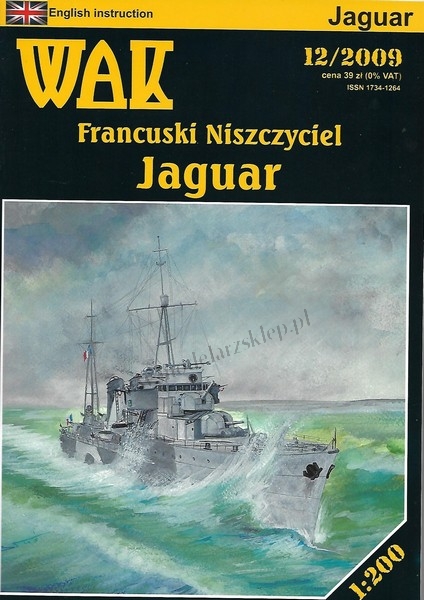 Model francuskiego niszczyciela "Jaguar", który był powiększonym rozwinięciem niszczycieli typu Bourrasque (na których wzorowane były polskie ORP "Wicher" i ORP "Burza"). Model w atrakcyjnym kamuflażu z października 1939r. Model skomplikowany, przeznaczony dla co najmniej średnio zaawansowanych modelarzy. Model zawiera także instrukcję w języku angielskim.