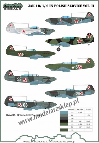 Strona główna » Kalkomanie » kalkomanie skala 1/48 » Model Maker D48050 - Yak-1/7/9 in Polish service vol.2