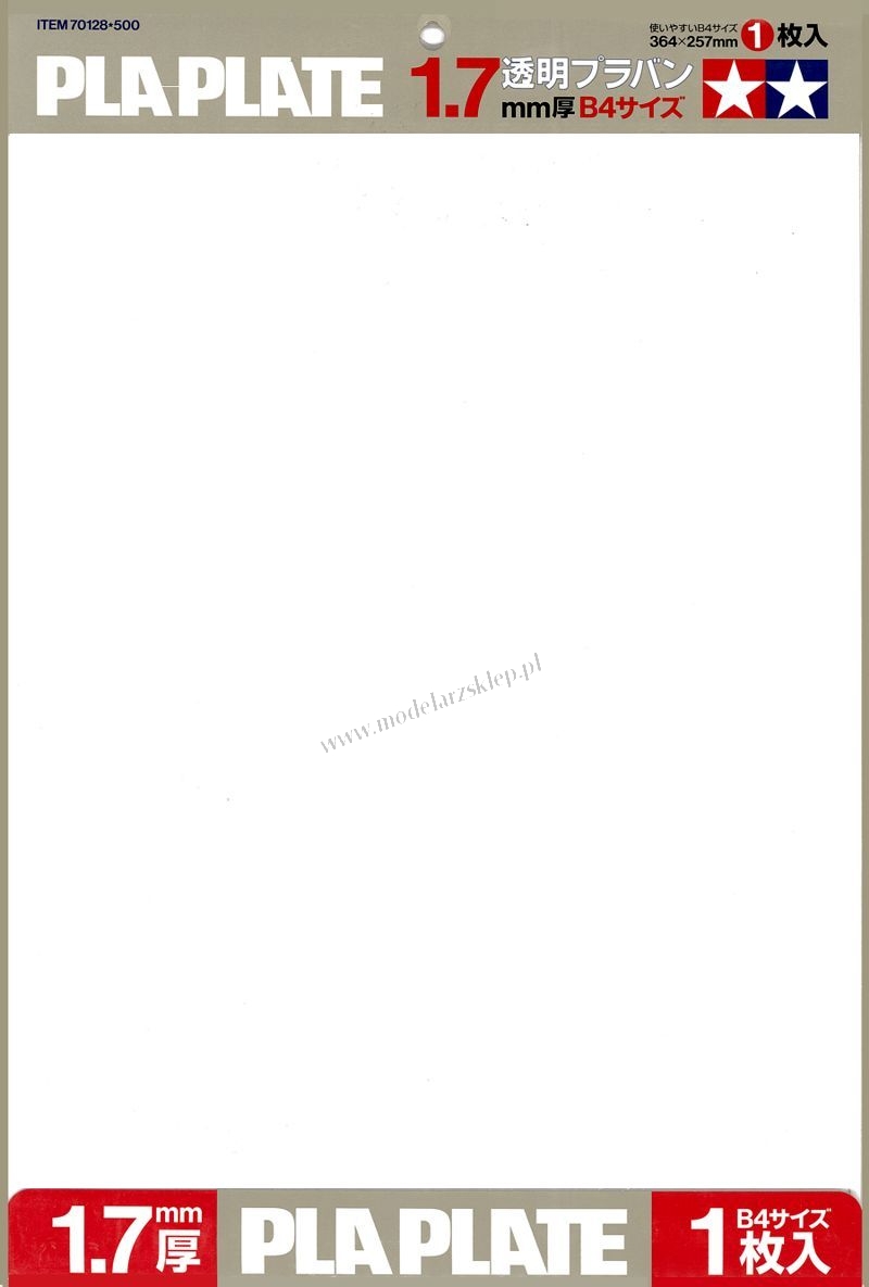 Strona główna » Akcesoria/materiały konstrukcyjne » płyty polistyrenowe » Tamiya 70128 - Płyta polistyrenowa Pla-Plate 1,7 mm clear (B4)
