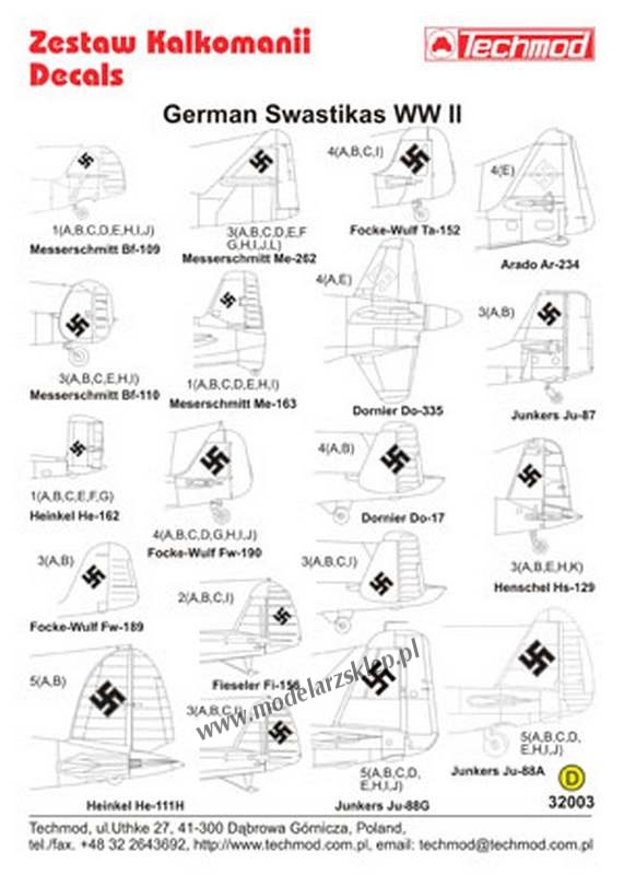 Strona główna » Kalkomanie » kalkomanie skala 1/32 » Techmod 32003 - German WWII Swastikas