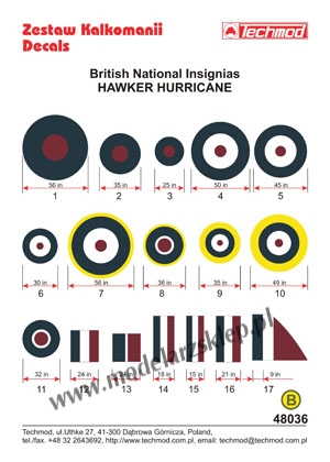 Strona główna » Kalkomanie » kalkomanie skala 1/48 » Techmod 48036 - British National Insignias - Hawker Hurricane