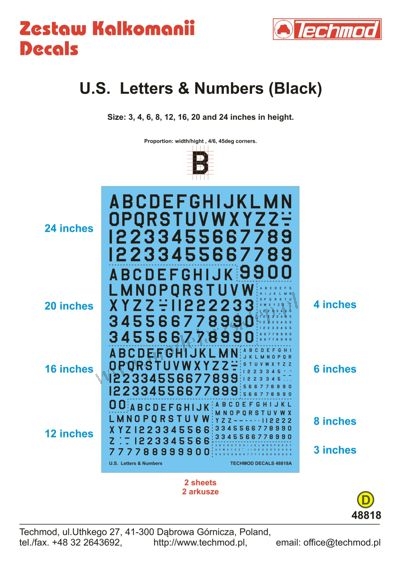 Strona główna » Kalkomanie » kalkomanie skala 1/48 » Techmod 48818 - U.S. Letters & Numbers (Black)