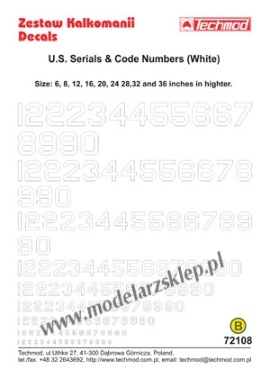 Strona główna » Kalkomanie » kalkomanie skala 1/72 » Techmod 72108 - White U.S. Serial Code Numbers