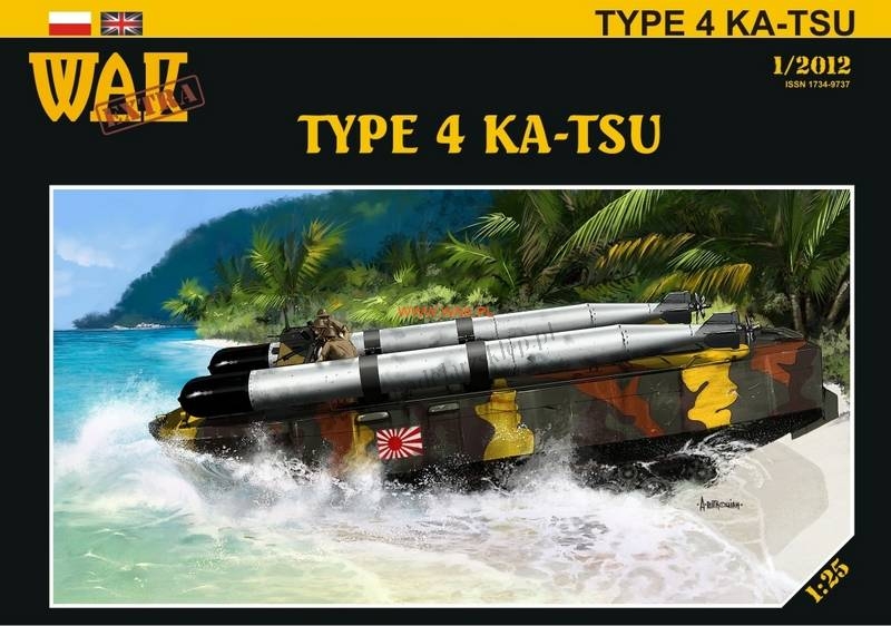 Model japońskiej amfibi desantowej z IIWŚ. Pojazd poza desantem mógł przewozić dwie torpedy. Model waloryzowany. Model zawiera także instrukcję w języku angielskim. Format A3.
