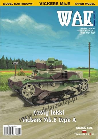 Vickers Mk.E był podstawowym polskim czołgiem w latach 30-tych XX wieku. Zastąpiony został przez czołg 7TP (WAK 5/2009), jednak pewna ich liczba wzięła udział w walkach we Wrześniu 1939. Model zamieszczony w tym opracowaniu przedstawia pojazd dwuwieżowy będący na wyposażeniu Warszawskiej Brygady Pancerno-Motorowej - Polska 1939 rok (Wersja jednowieżowa ukazała się w WAK 4/2010). Model skomplikowany, ze względu na skomplikowane podwozie.